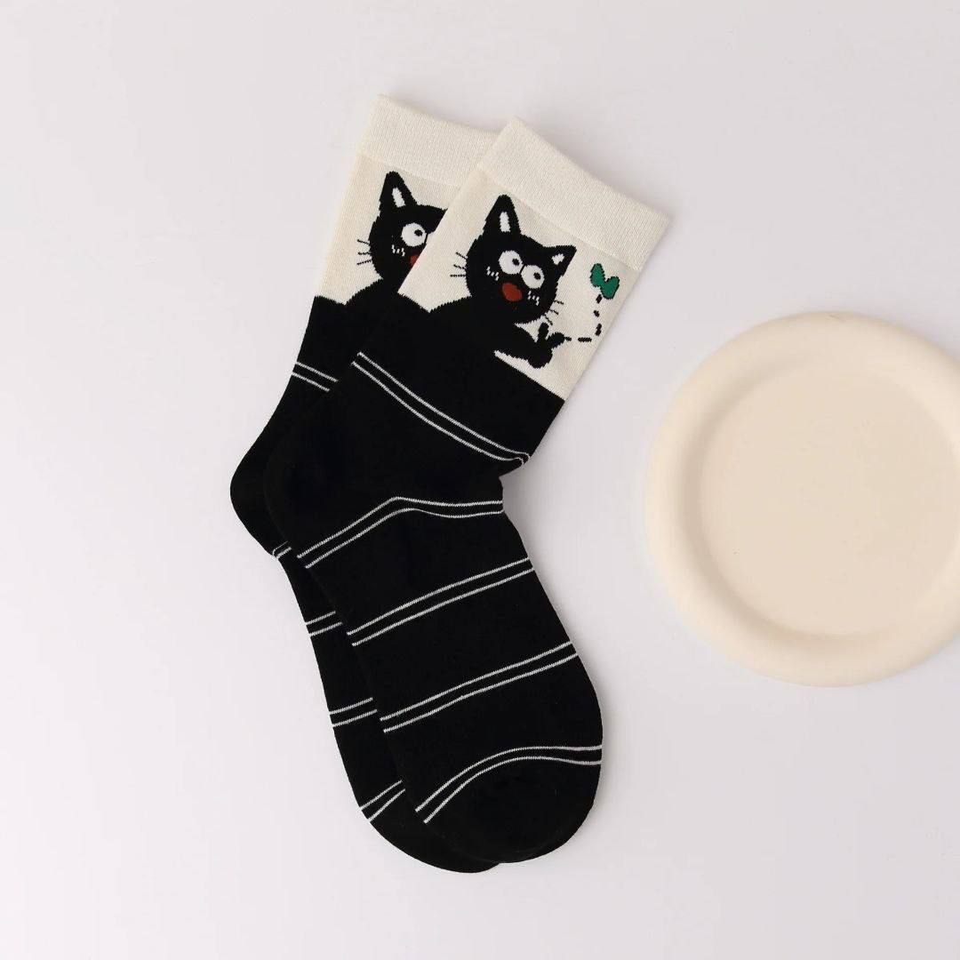 جوراب ساقدار راهراه طرح گربه ضد حساسیت و تنفسپذیر